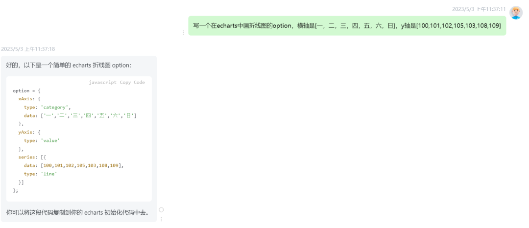 现在有了chatGPT助力,不用自己写option,我们使用echarts的效率会直线上升。